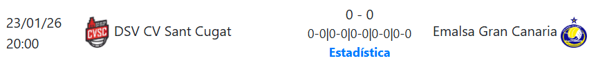 Para cerrar la ronda de curtos de final el viernes a las 8 de la tarde se enfrentarán 2 buenos equipos cómo Sant Cugat y Emalsa Gran Canaria. Con ambos equipos empatados a puntos en la clasificación de la liga el partido promete igualdad y espectáculo, por lo que el mínimo detalle puede decantar esta eliminatoria.